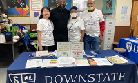 Downstate’s Center for Health Promotion and Wellness participated in the Spring Time Community Health Fair held at the Brooklyn Public Library-Flatlands branch. The event, hosted by Tots and Teens In-Focus and Circle Dynamic Women of Power, was broadcast live on Talk AD Town Radio Station. Downstate provided information on orthopaedic services, breastfeeding, organ donation, and services available for the uninsured/under-insured at the Brooklyn Free Clinic. In addition, free health screenings and preventive health education were provided.