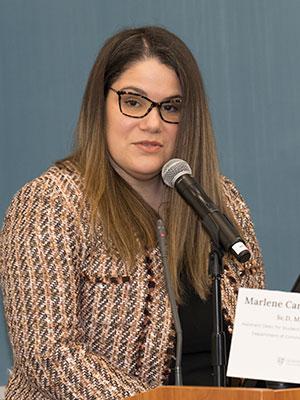 Marlene Camacho-Rivera, Sc.D., M.S., MPH, Assistant Dean for Student Affairs and Assistant Professor delivered opening remarks, which set a powerful foundation for the discussion. She reminded us that health inequities are not accidental or random. They are structured, predictable, and preventable. Drawing on both public health research and lived experience, she emphasized that disparities in chronic disease, life expectancy, and premature mortality are the downstream consequences of policy decisions and systemic disinvestment over time. Dr. Camacho-Rivera’s focus on the social determinants of health underscored a critical point: inequity is present long before a patient ever enters a clinic or hospital.