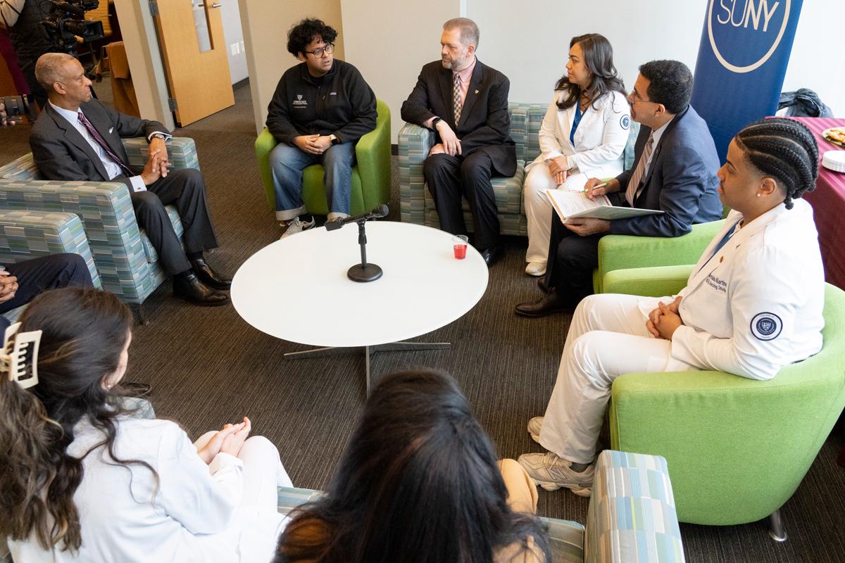 The Chancellor also met with a select group of students who shared how their education at Downstate prepares them for today’s healthcare workforce. Their reflections underscored the strength of our clinical training model and the depth of our mission-driven academic programs.