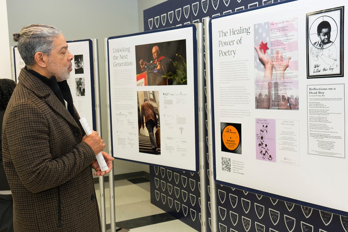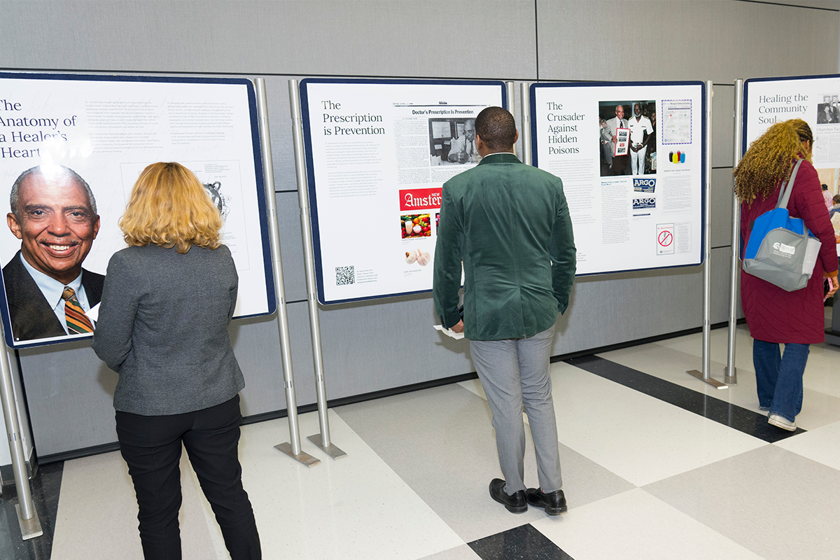 Guests also viewed a moving tribute video produced by the Office of Communications & Marketing, thoughtfully weaving together images and memories that captured both the professional achievements and personal spirit of Dr. Deas’s life. Following the formal program, attendees toured the in-person memorial exhibit installed on campus. The exhibit features photographs, career milestones, and written reflections from those he mentored.
