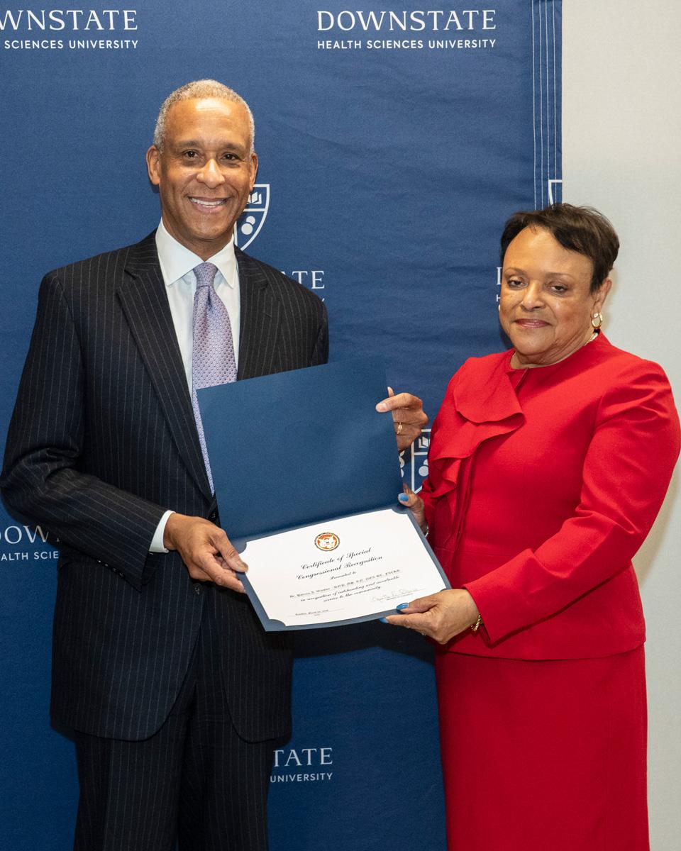 Several hundred well-wishers gathered in The Commons on Monday, March 23, 2026. Family members joined by livestream, extending the moment beyond the room. The afternoon recognized Dr. Winston’s impact in leadership, clinical operations, academic advancement, and community service. Colleagues and partners recognized a career grounded in discipline, compassion, and commitment to Downstate’s mission.