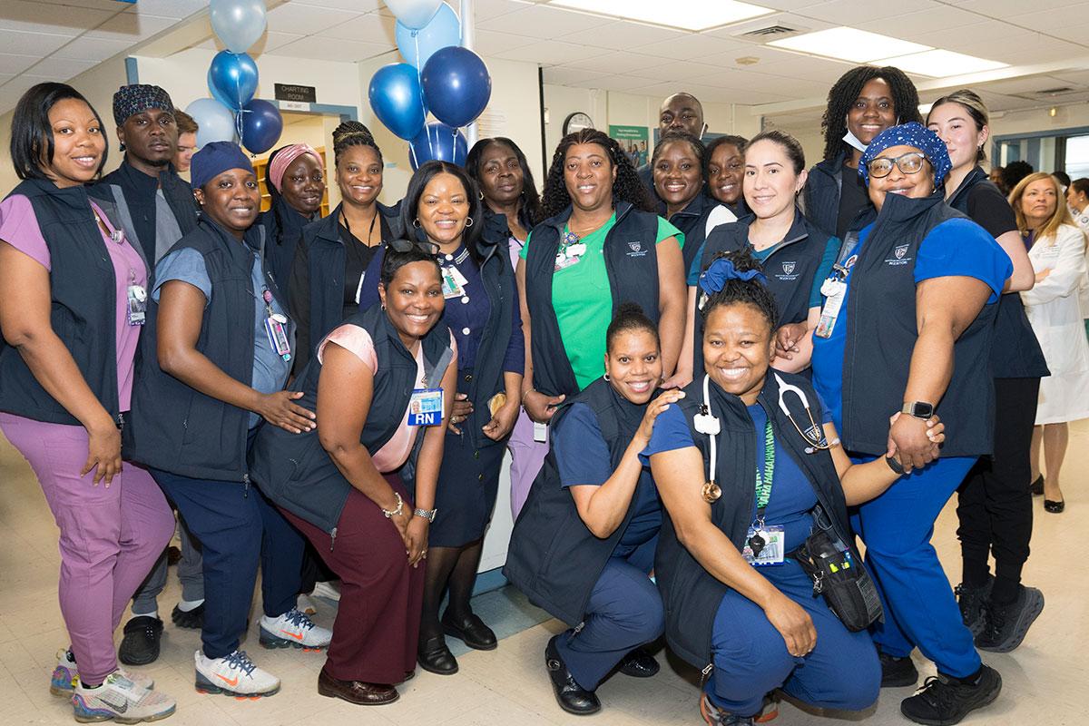 The ceremony also recognized the leadership behind the effort, including Lori Escallier, PhD, RN, CNE, FAAN, Dean of the College of Nursing; Marie-Claire Roberts, Ph.D., MS, MPA, RN, Executive Vice Dean and Associate Professor, College of Nursing; Cheryl Rolston, DNP, MA, RN, NE-BC, Chief Nursing Officer, and nurse leaders Sherly Bristol and Maxine Trowers, whose work on the units helped bring the model to life.