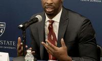 for a group photo wearing purple shirts provided by the Office of Communications and